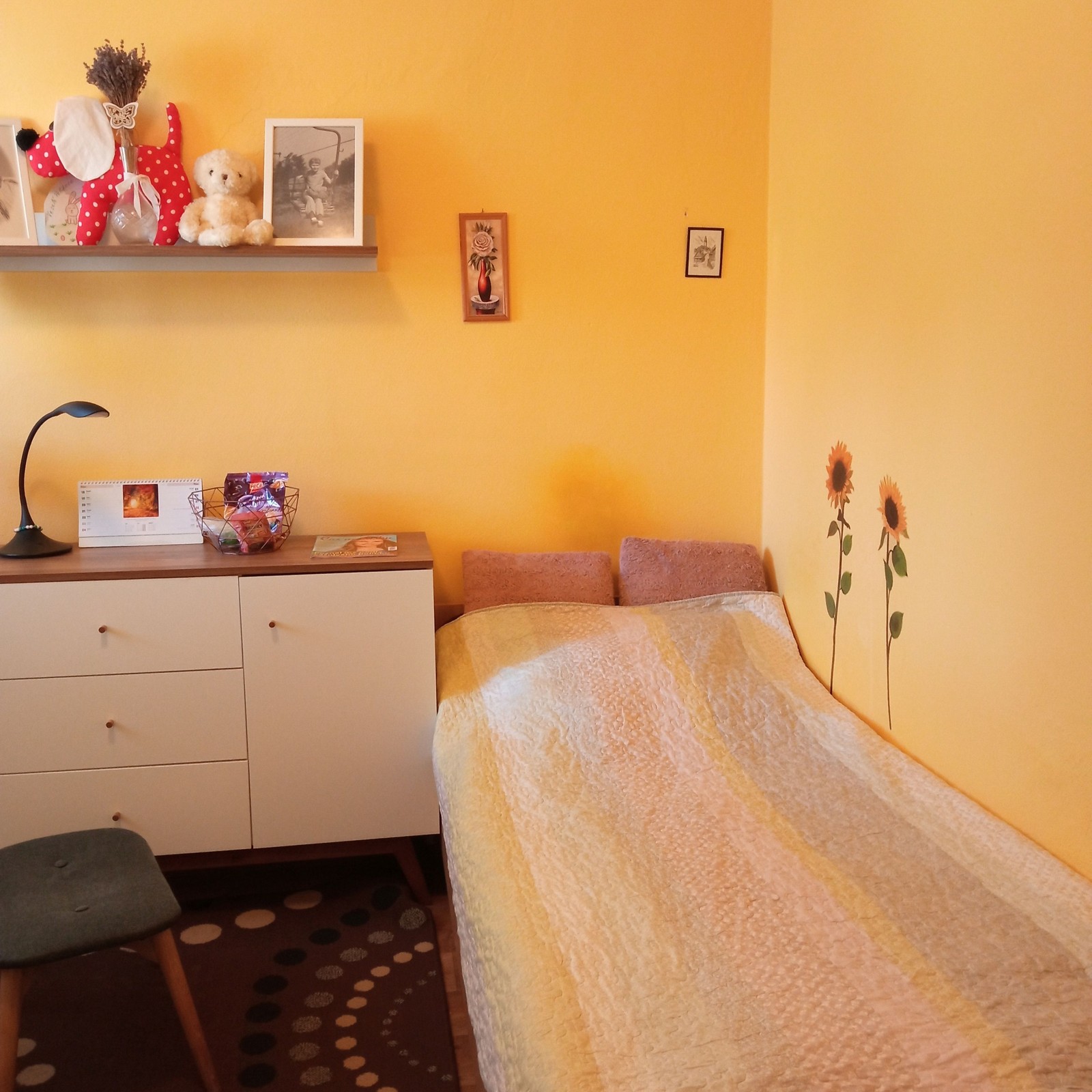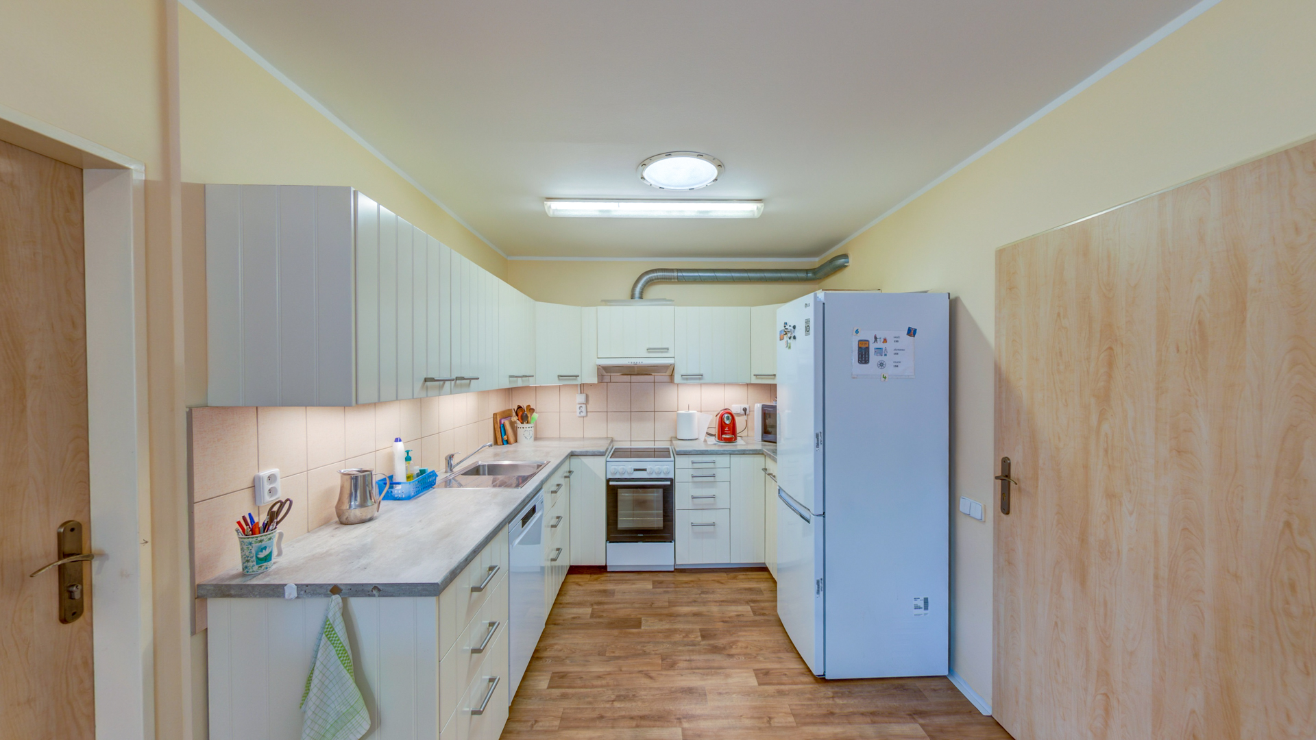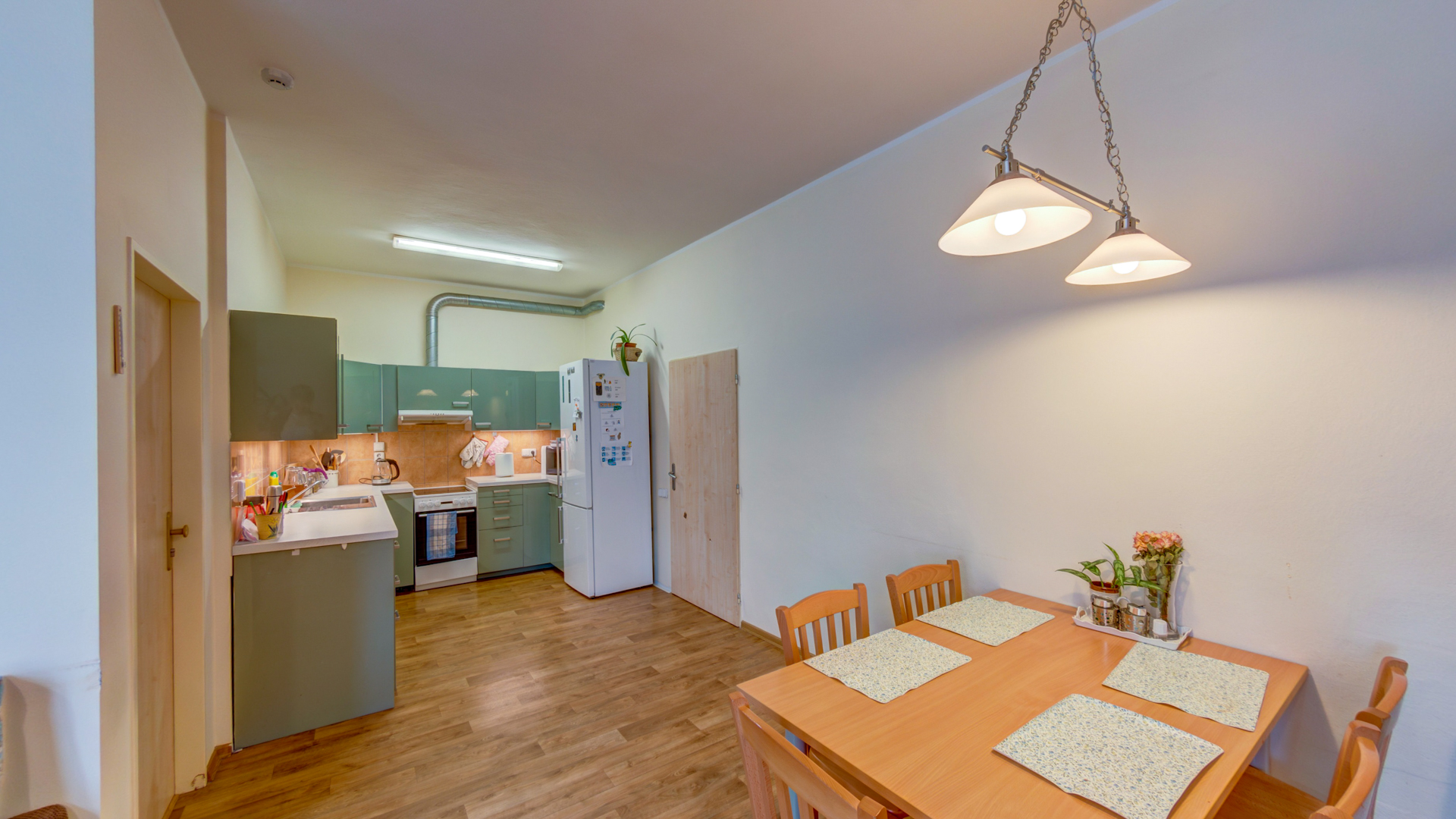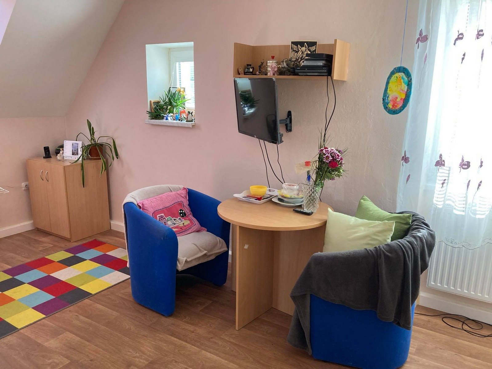 V bytě ve 2. podlaží je také pět jednolůžkových pokojů. I zde mají klienti k dispozici a obývací pokoj společně s kuchyní, sociální zařízení a samostatné WC.