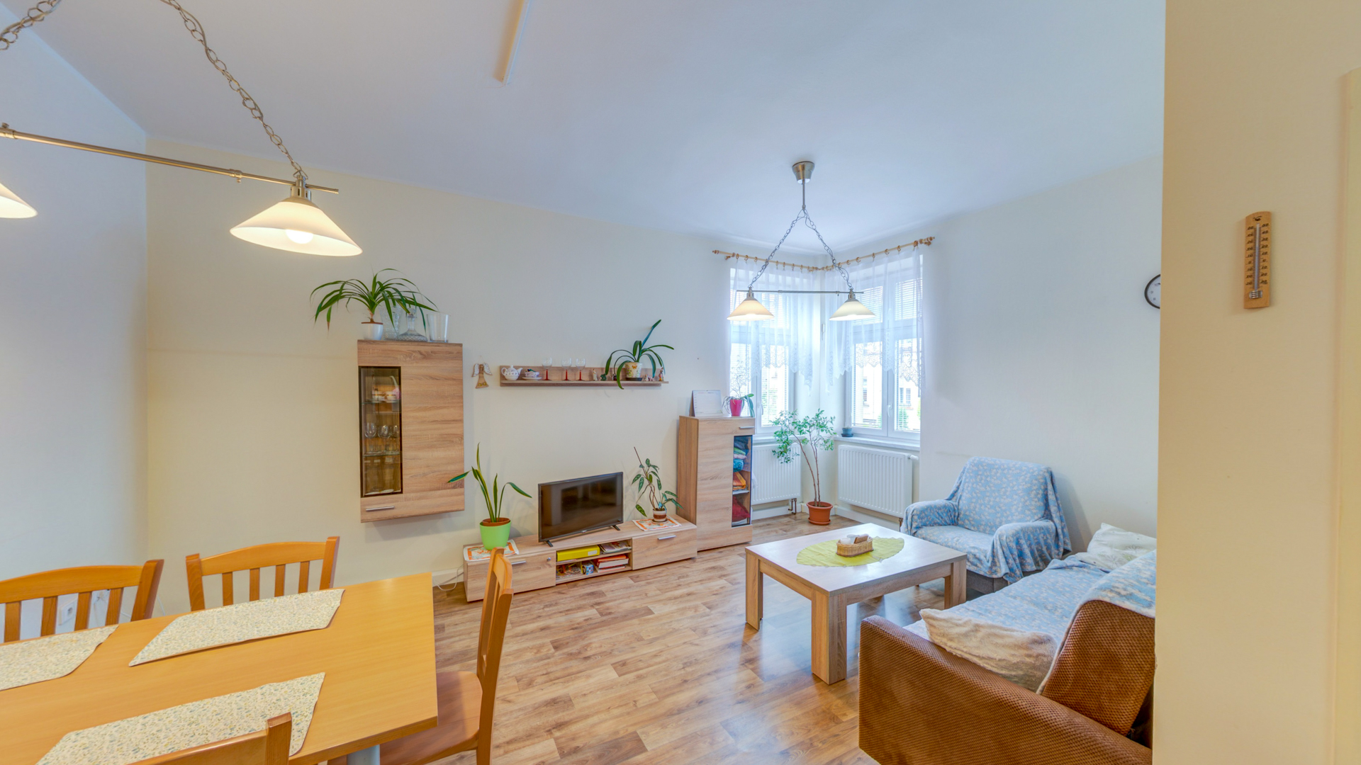 Služba na ulici Slovanská je poskytována v rodinném domě, kde jsou dvě samostatné bytové jednotky celkem pro 10 klientů. V 1. nadzemním podlaží je jedna bytová jednotka, kde je pět jednolůžkových pokojů, obývací pokoj s kuchyní, koupelna a WC.
